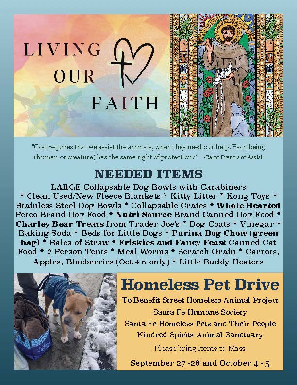 Villa Therese Catholic Clinic, the only FREE medical clinic in New Mexico, will be holding their annual fundraiser on October 4, 2025 at The Inn at Loretto. Living Our Faith is partnering with Villa Therese by recruiting volunteers to help with the silent auction, the raffle and check-out from 3:30-8:30. As a volunteer, you will have the option of receiving a free bid number and will be provided with a boxed dinner. Your help is critical to the success of this event, and impacts the ability of the clinic to provide the medical, dental and vision services that many New Mexicans would otherwise go without. If you are interested in helping please let me know as soon as possible. If you would prefer to attend the auction rather than volunteer, visit https://villatherese.ejoinme.org/MyEvents/VivaLaClinica2025/tabid/1532581/Default.aspx